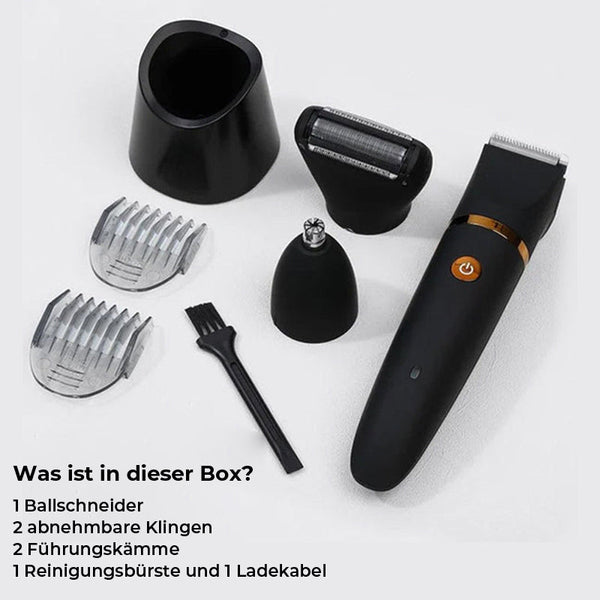 1 Set * 3 in 1 Elektrischer Körperhaartrimmer(USB-Ladekabel, 2 Messschieber (3-6/9-12 mm), Nasenhaarschneider, Rasierer, Barbier, Reinigungsbürste, Aufbewahrungsbehälter)
