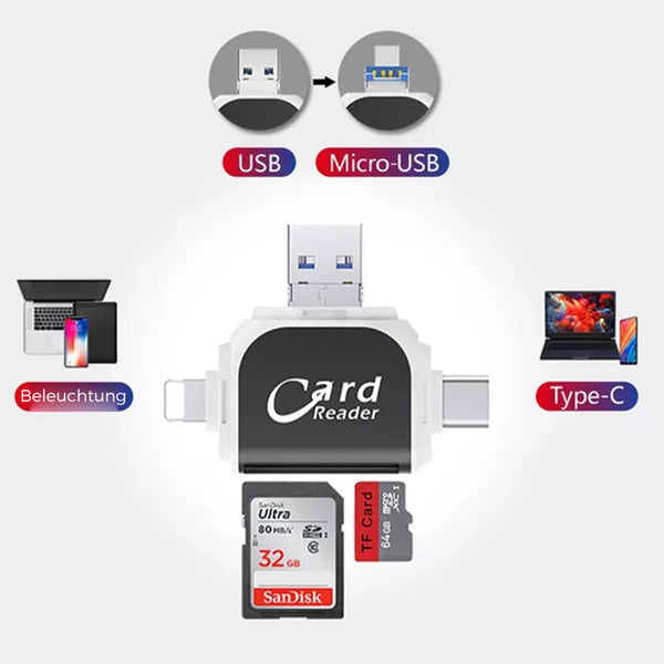 4-in-1-Universal-SD-TF-Kartenleser mit mehreren Anschlüssen