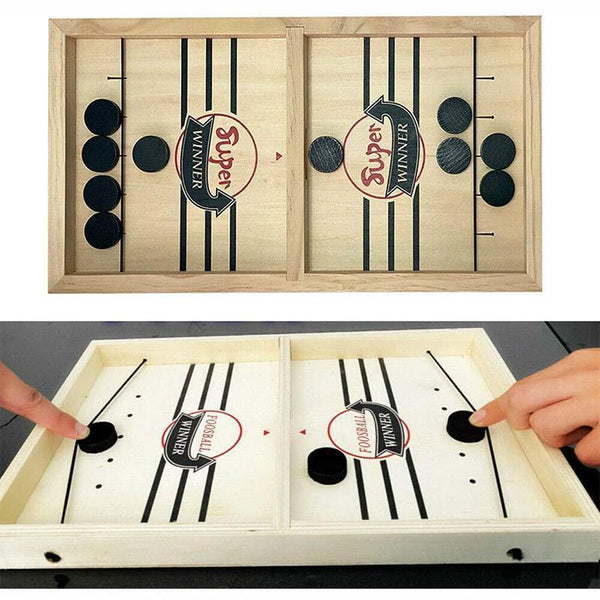 Schnelles Slingpuck-Brettspiel - Ein reversibles Holzbrettspiel: ein schnelles Geschicklichkeitsspiel auf der einen Seite und ein Strategiespiel auf der anderen Seite.