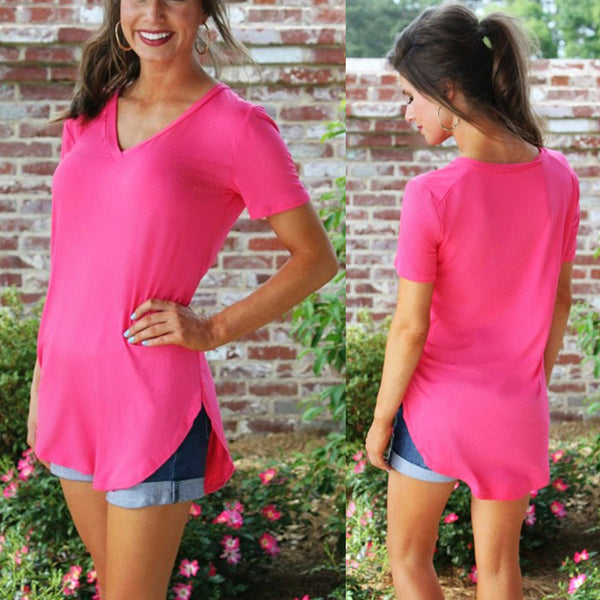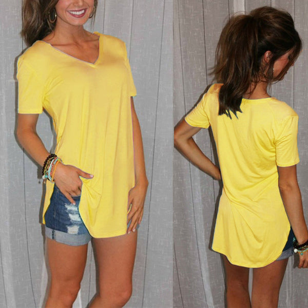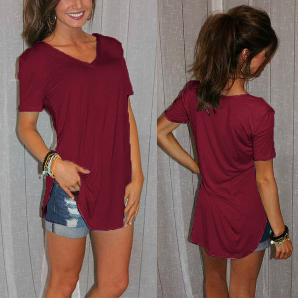 • Trendige Farben und Designs: Dieses lässige Oberteil für Frauen ist in einer Vielzahl von trendigen Farben und Designs erhältlich und zeichnet sich durch einen V-Ausschnitt, einen geraden Saum, einen schlichten Stil und eine niedliche, schmale Passform aus; V-Ausschnitt-Styling-T-Shirts mit einfarbiger Farbe und geradem Saum, die Ihnen eine feminine Passform verleihen