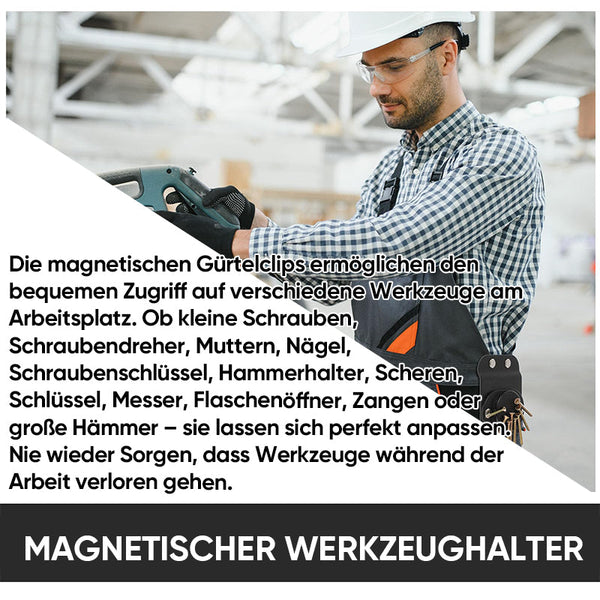 Der Magnet sorgt für eine sichere Aufbewahrung Ihrer Werkzeuge und dank der Clip-Funktion können Sie sie ganz einfach an Werkzeuggürteln befestigen.