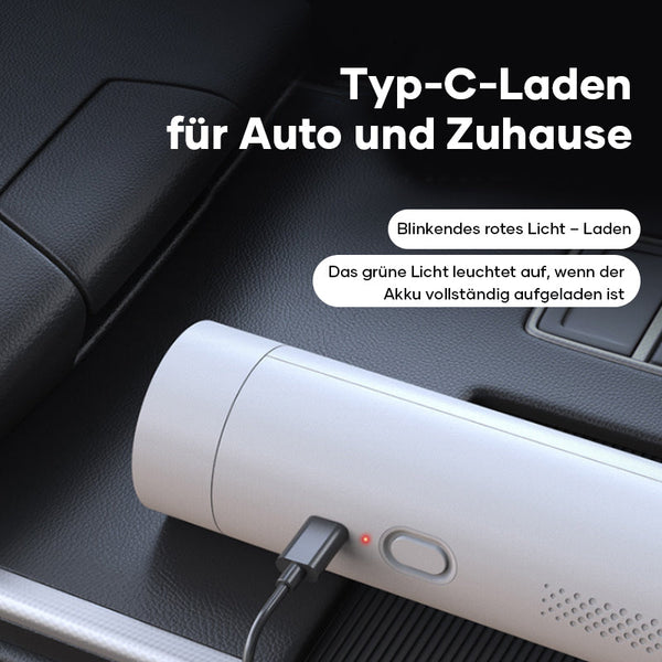 Ultraleicht und kabellos – nur 540 g (1,2 lb), so viel wie eine Wasserflasche. Dank des kabellosen Designs können Sie Sand, Staub und Schmutz in jeder Ecke des Autos problemlos mit einer Hand entfernen. Die mitgelieferte Aufbewahrungstasche ist kompakt und tragbar und eignet sich ideal für die Aufbewahrung im Auto.