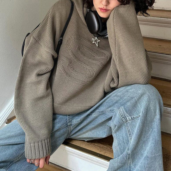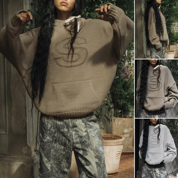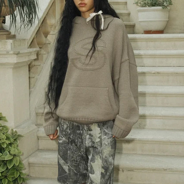 Der Strick-Hoodie hat unsere charakteristische übergroße Passform und die überschnittene Schulterpartie. Dieser kuschelige Strickpullover verfügt über ein geprägtes S auf der Brust.