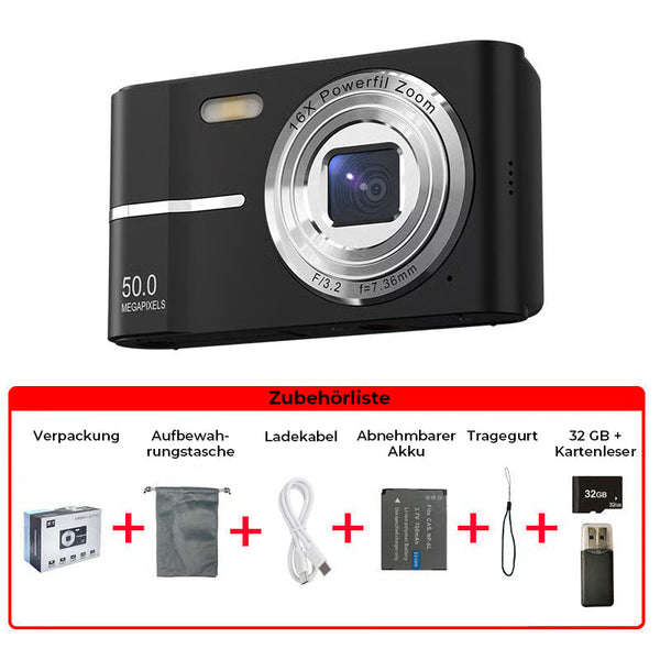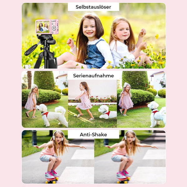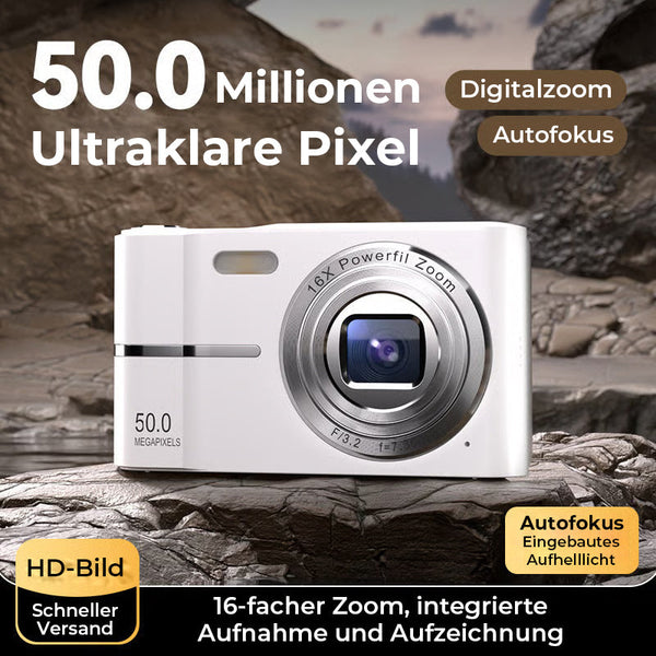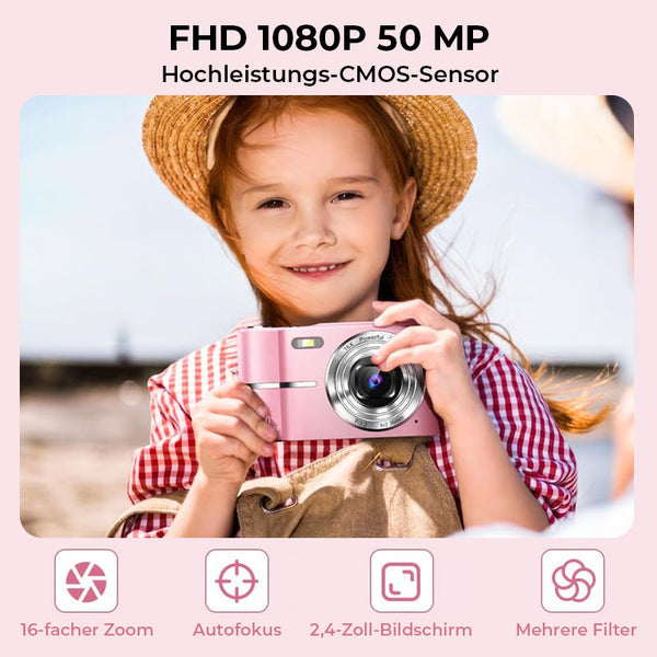 Diese tragbare Digitalkamera im Taschenformat ist für Kinder und Fotografie-Anfänger konzipiert. Sie bietet ein benutzerfreundliches Design und tolle Funktionen wie ein 16-fach optisches Zoomobjektiv, Bewegungserkennung, Gesichtserkennung und Zeitraffer-Videoaufnahme.