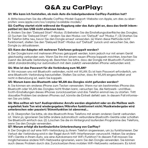 ăDrahtloser CarPlay-Adapteră: Wandeln Sie Ihr kabelgebundenes CarPlay-GerĂ€t mit diesem benutzerfreundlichen Adapter fĂŒr Apple-Telefone in ein kabelloses um.
