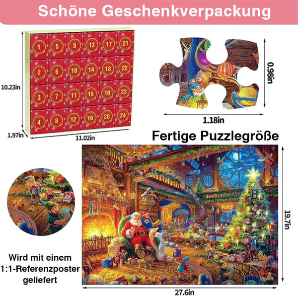 đ ăAdventskalender-Countdown zu WeihnachtsrĂ€tselnă-- Dieses Adventskalender-Puzzle fĂŒr Erwachsene und Kinder 2023 enthĂ€lt 24 nummerierte KĂ€stchen, die an dem Tag geöffnet werden mĂŒssen, der der Nummer entspricht. Im Inneren jeder Box befinden sich 42 Puzzleteile, die zum gesamten 1008-teiligen Puzzle gehören. Das Ziel besteht darin, zwischen dem 1. und 24. Dezember jeden Tag einen Abschnitt des Puzzles fertigzustellen und bis zum Weihnachtstag herunterzuzĂ€hlen.