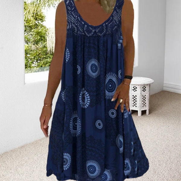 Damen Sommer O-Ausschnitt ärmellosem Druck Kleid