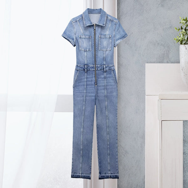 Werten Sie Ihren Stil mit unserem Skinny Bootcut Denim Jumpsuit auf – die perfekte Mischung aus Komfort und Mode!