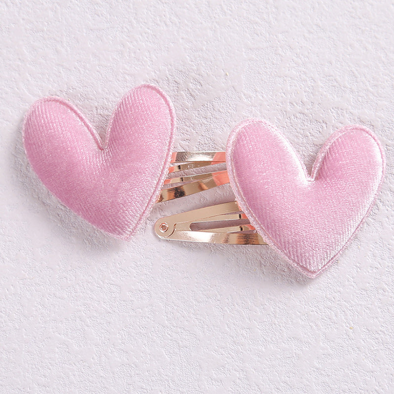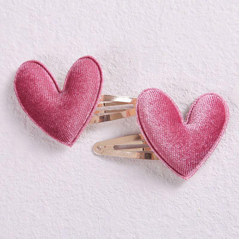 Herzförmige Haarspangen aus Samt mit Druckknöpfen