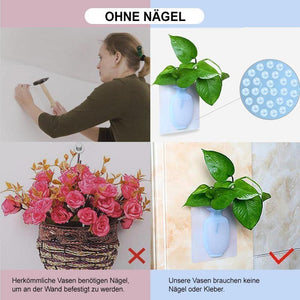 💐FLEXIBEL UND ENTFERNBAR - Diese Vase kann entfernt und wiederholt verwendet werden. Sie müssen nur den Rücken und die Oberfläche reinigen, an der Sie haften möchten.