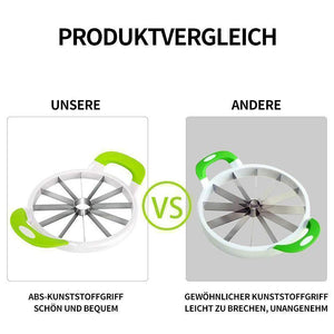 Der Sommer kommt, fangen Sie schnell an Melone zu essen. Aber es ist recht schwierig, besonders wenn man es schneidet, weil es so groß ist. Mit diesem Wassermelonen Schneider ist das Schneiden Ihrer Wassermelonen jetzt ein Kinderspiel! Legen Sie einfach den Schneider auf die Wassermelone und drücken Sie ihn nach unten, bis alle Wassermelonen gleichmäßig geschnitten sind! Alles sind in wenigen Sekunden fertig!