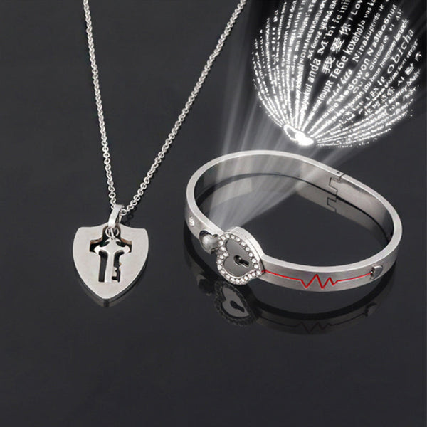 • 1 × Schloss Armband und Schlüssel Halskette Set