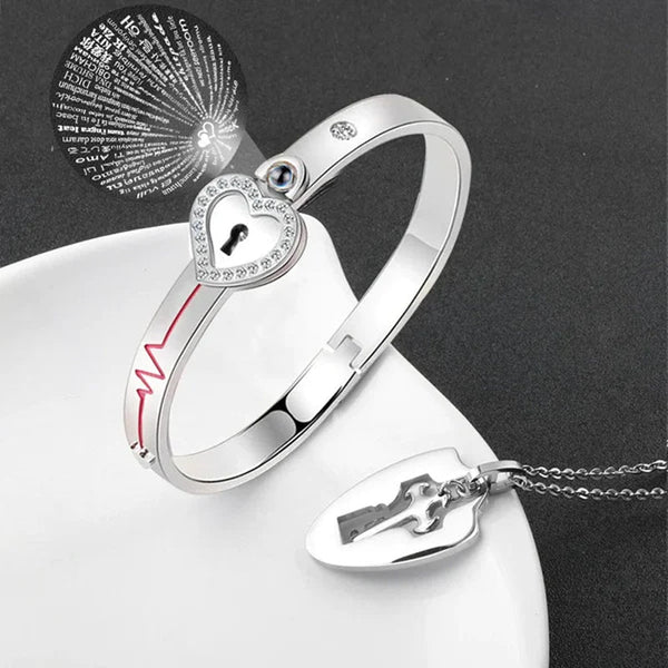 😍Überraschen Sie den besonderen Menschen in Ihrem Leben mit unserem Set aus Schloss-Armband und Schlüssel-Halskette. Unser Armband- und Halsketten-Set ist das perfekte Symbol für Liebe und Zusammengehörigkeit. Sie werden beide an Ihre ewige Verbindung erinnert, auch wenn Sie meilenweit voneinander entfernt sind.
