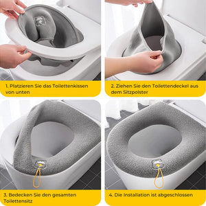 Es sind nur drei Schritte erforderlich, um die Installation abzuschließen. Das Toilettensitzkissen selbst ist sehr flexibel, passend für die meisten Toilettensitze (U-förmig, O-förmig, V-förmig).